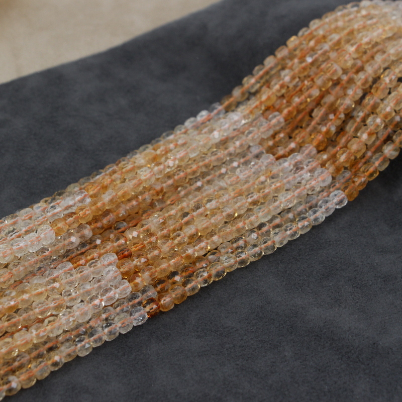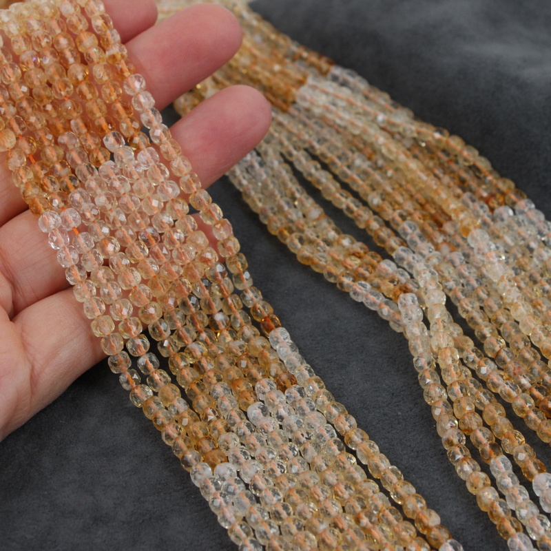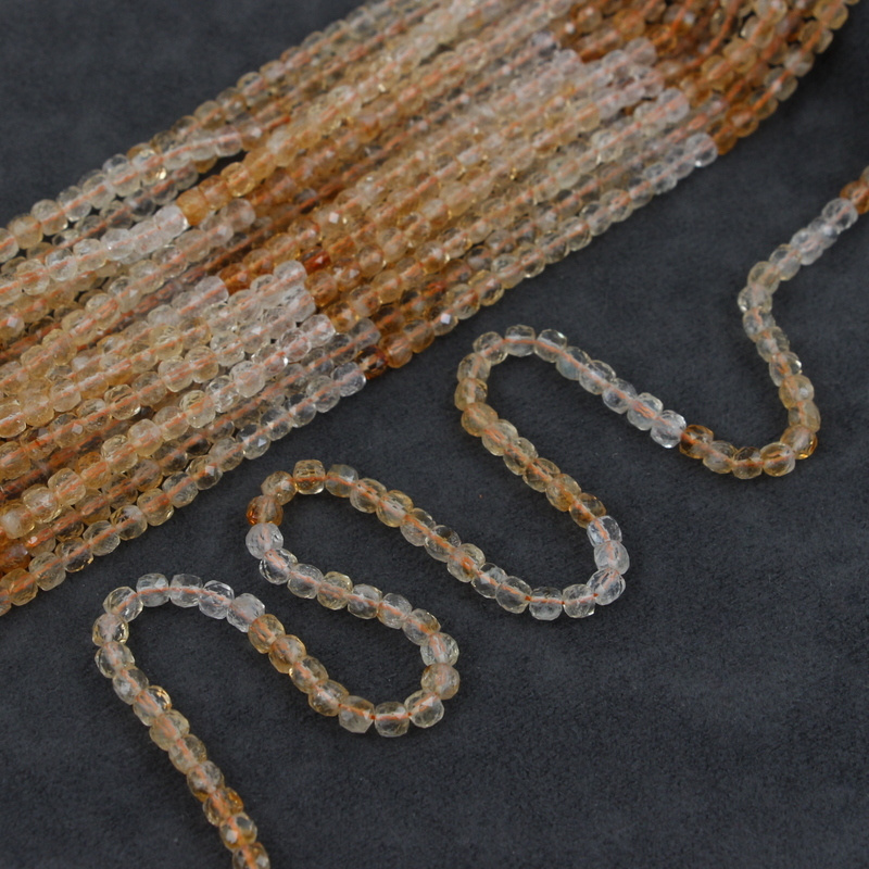 Fasetowane, kostki cytrynu w rozmiarze około 4x4mm. Efekt cieniowania.
