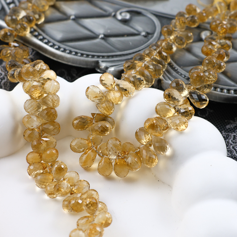 Cytryn w formie fasetowanych kropli. Kamienie staraliśmy się dobrać w pary tak, aby były do siebie możliwie najbardziej zbliżone.