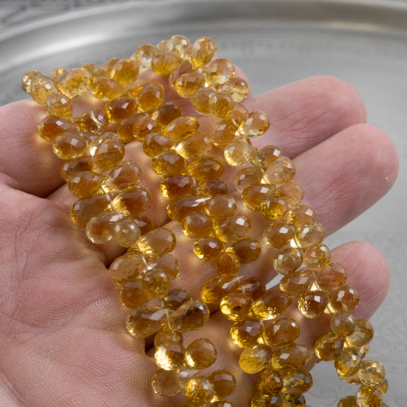 Cytryn w formie fasetowanych kropli. Kamienie staraliśmy się dobrać w pary tak, aby były do siebie możliwie najbardziej zbliżone.
