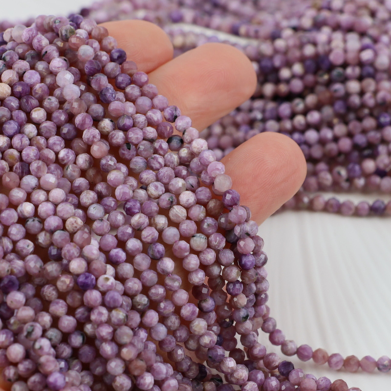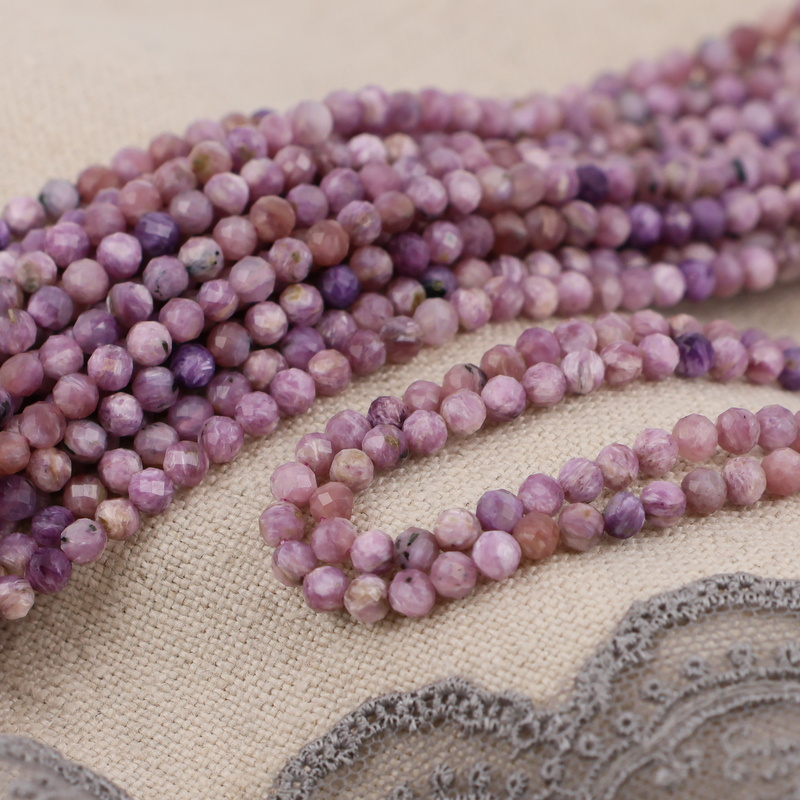 Czaroit to rzadki kamień ceniony za swoje hipnotyzujące, fioletowo-purpurowe barwy. Sznury są dość dobrej jakości, mają piękną ferie odcieni fioletu.