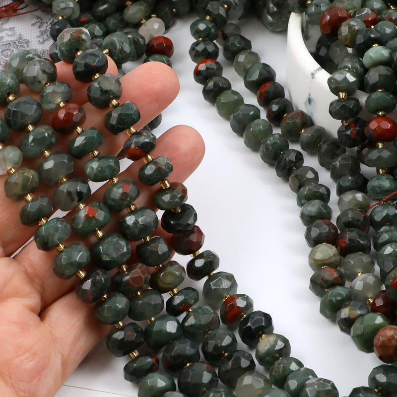 Fasetowane oponki heliotropu, znanego również jako bloodstone (kamień krwisty).