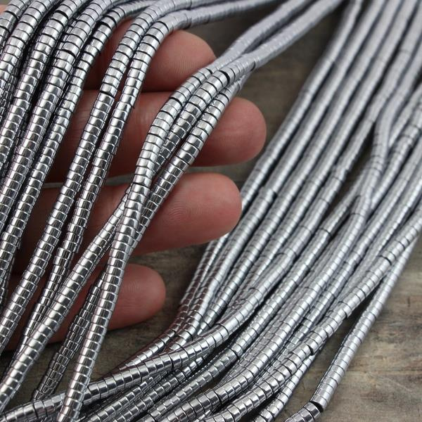 Gładkie oponki / dyski hematytu w kolorze jasnosrebrnym. Świetne na przekładki do drobnych kamieni.