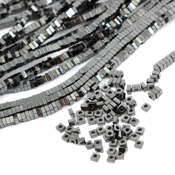 Cienkie kwadratowe dyski hematytu w kolorze naturalnym, grafitowym. Świetne na przekładki.