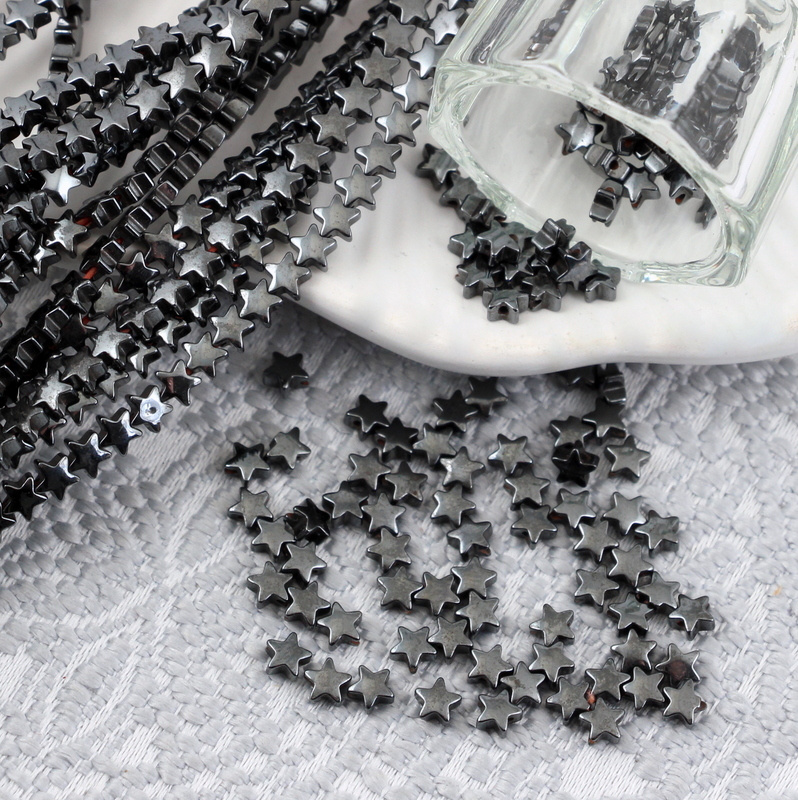 Drobne hematytowe gwiazdeczki w wersji błyszczącej. Doskonałe na wykończenia, przekładki itp.