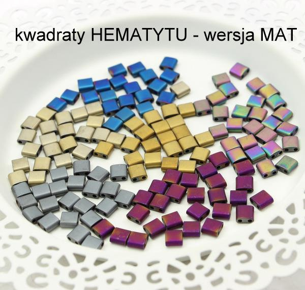 OpisKoraliki hematytu w kształcie płaskich kwadratów z dwoma otworami o średnicy ok. 1,30mm. Mogą służyć jako łącznik lub przekładka, idealne nadawać się będą do bransolet plecionych.