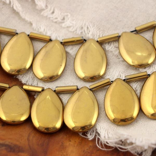 OpisGładkie, duże łezki hematytu. Polecamy na zawieszki, do kolczyków mogą okazać się zbyt ciężkie. Wiercenie przez wierzchołek. Polecamy także do obszywania koralikami i sutaszem.