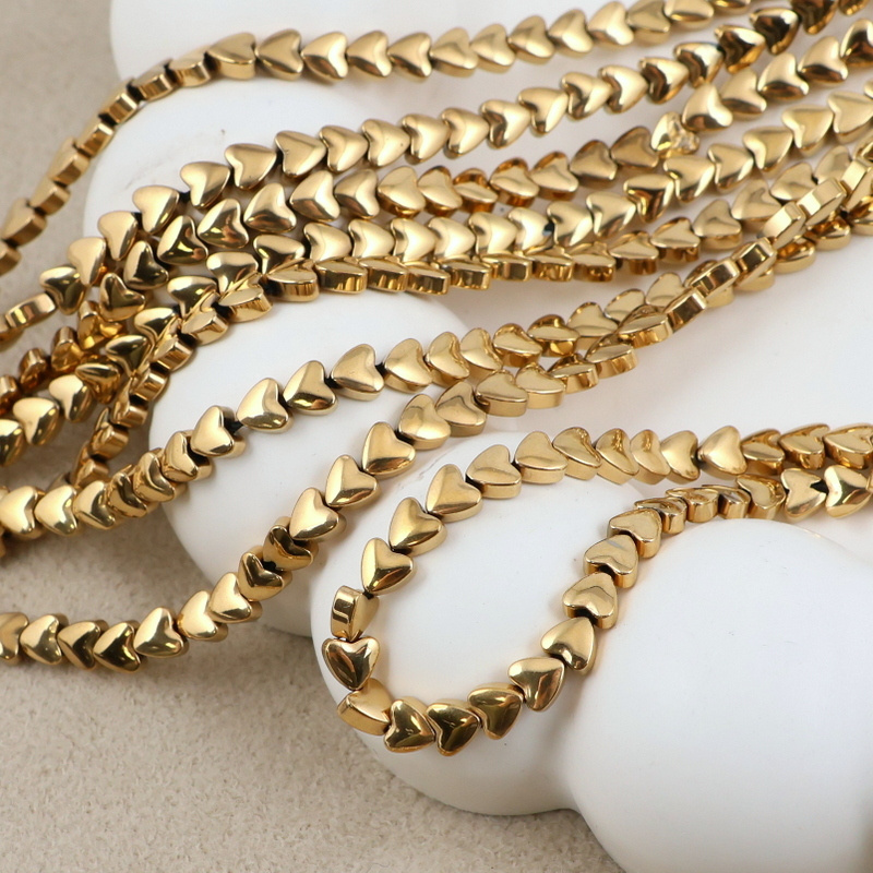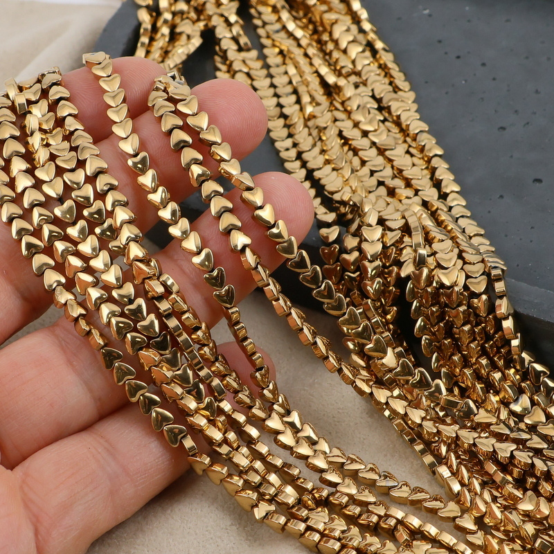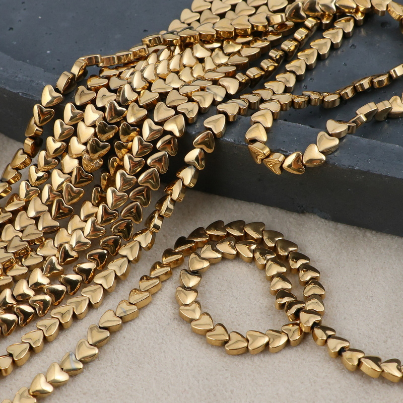 Hematyt mini serce złote 4mm [sznur 39cm]