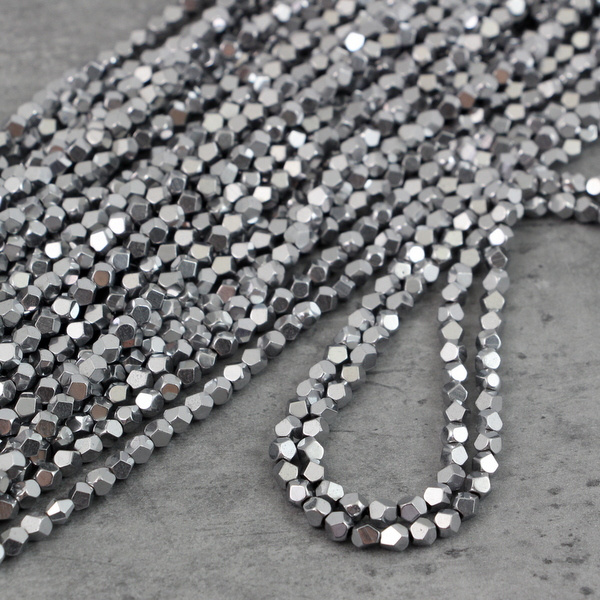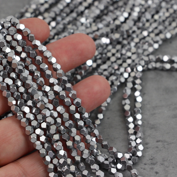 Hematyt srebrny kula grubo fasetowana 4mm [sznur 40cm]