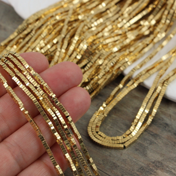 Złoty hematyt w kształcie mini dysków. Idealnie sprawdzi się jako przekładka do drobnych kamieni.