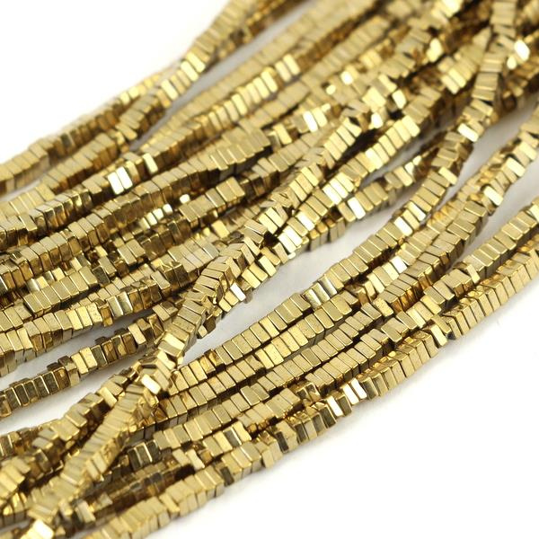 Cienkie kwadratowe dyski hematytu w kolorze jasnozłotym. Świetne na przekładki.