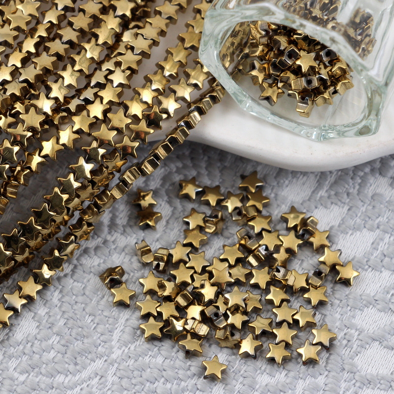 Drobne hematytowe gwiazdeczki w wersji błyszczącej. Doskonałe na wykończenia, przekładki itp.