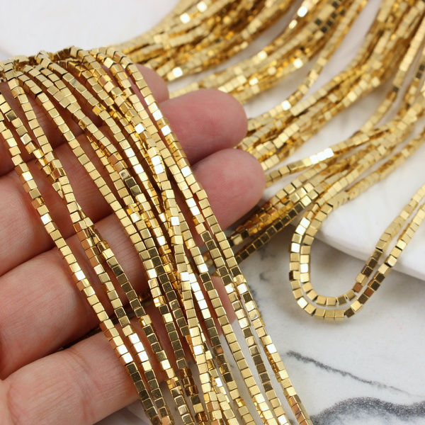 Złoty hematyt w kształcie drobnych kosteczek. Idealnie sprawdzi się jako przekładka do drobnych kamieni.