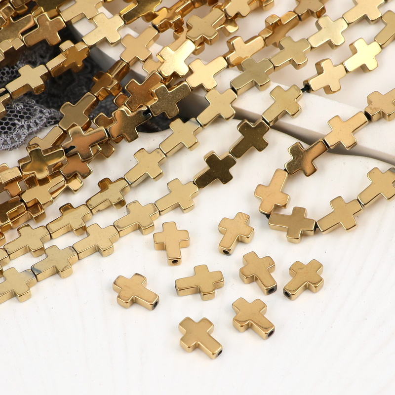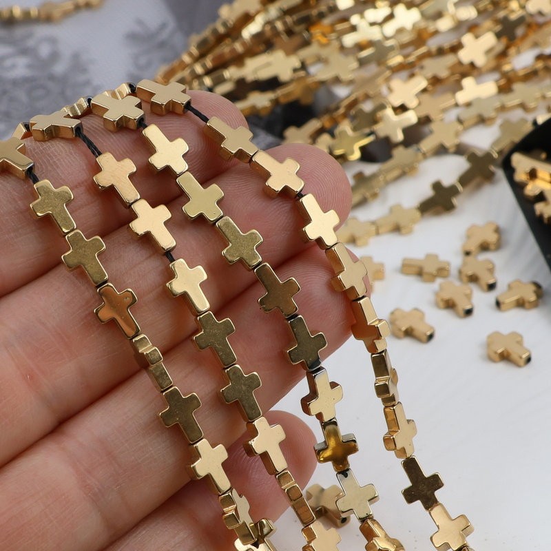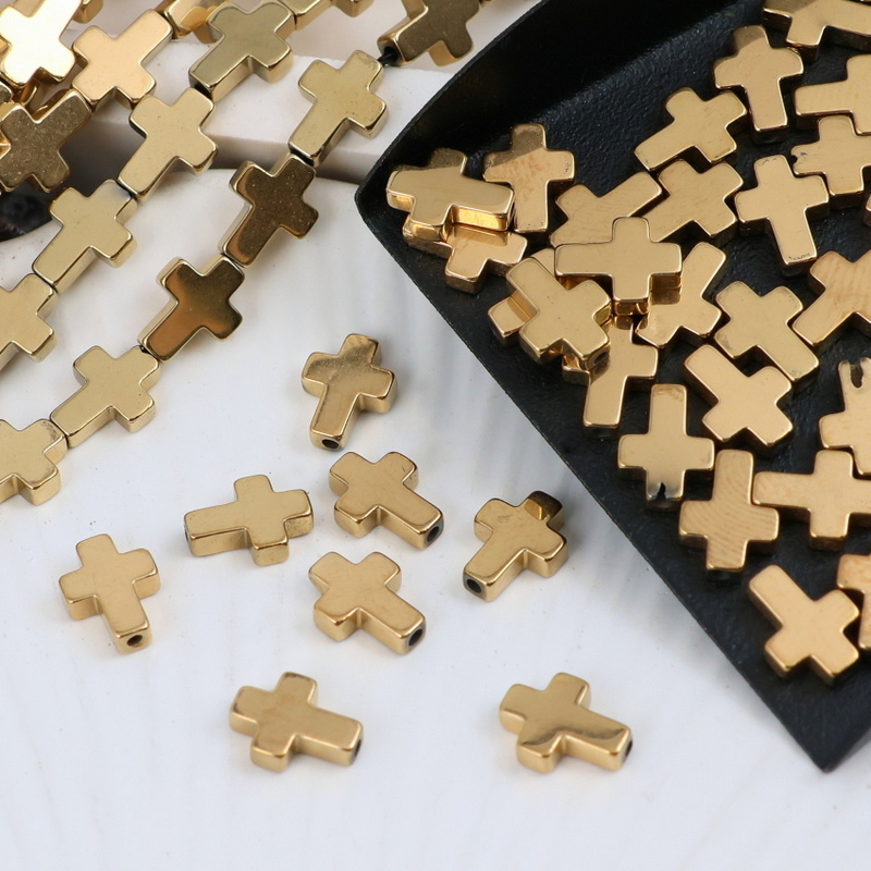 Hematyt złoty krzyżyk 8x6mm