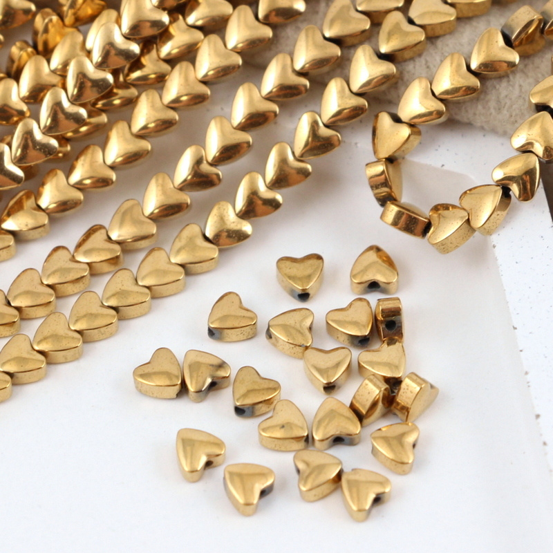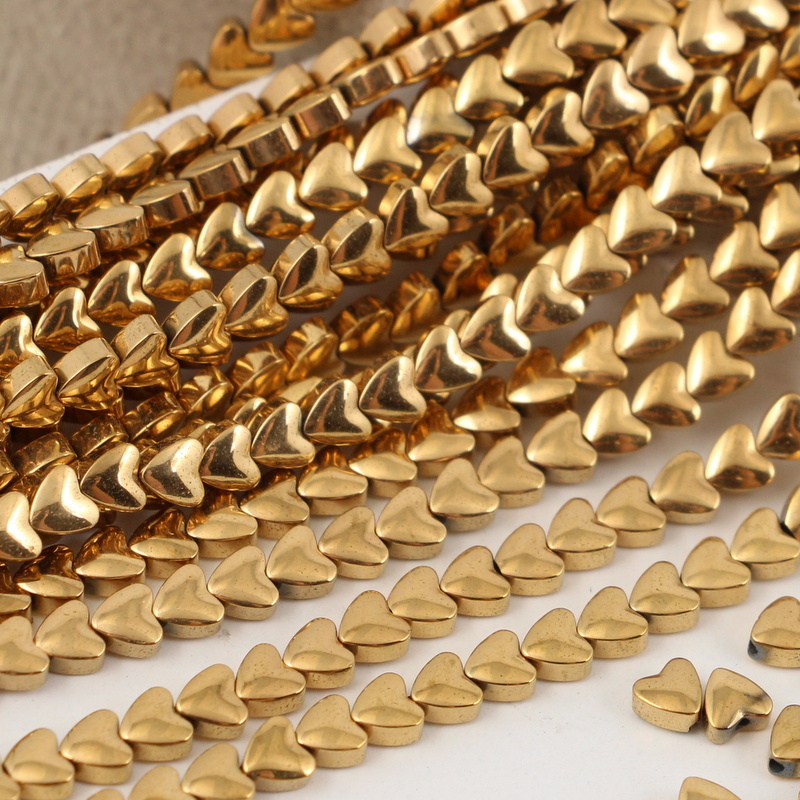 Złoty hematyt w kształcie mini serduszek.