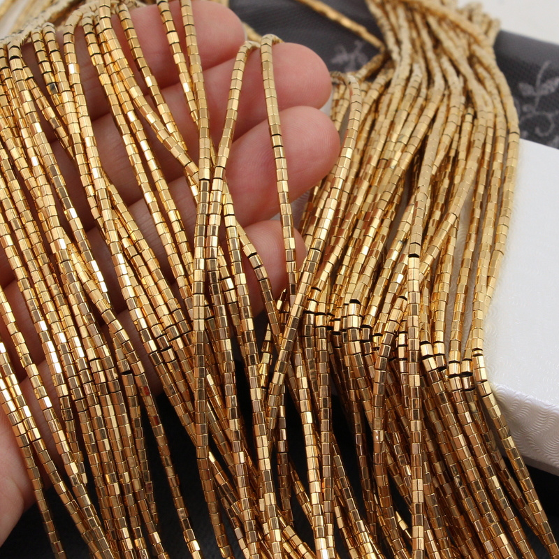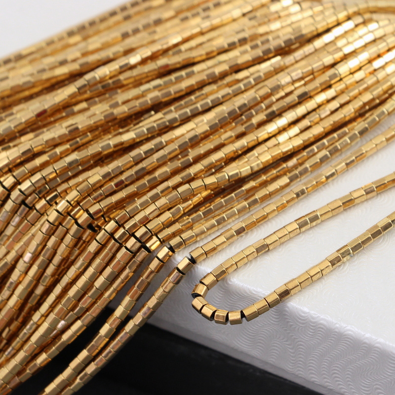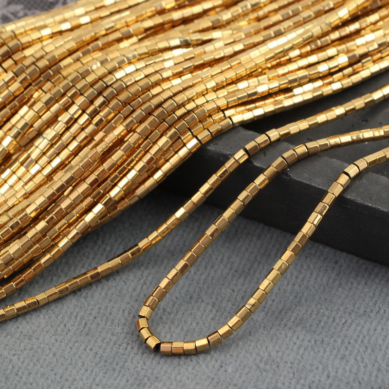 Hematyt złoty mini wałek fasetowany 2x2mm [sznur 39cm]