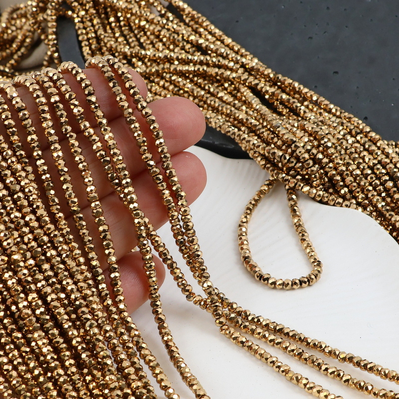 Fasetowany hematyt w kształcie oponki - bardzo błyszczące złoto.
