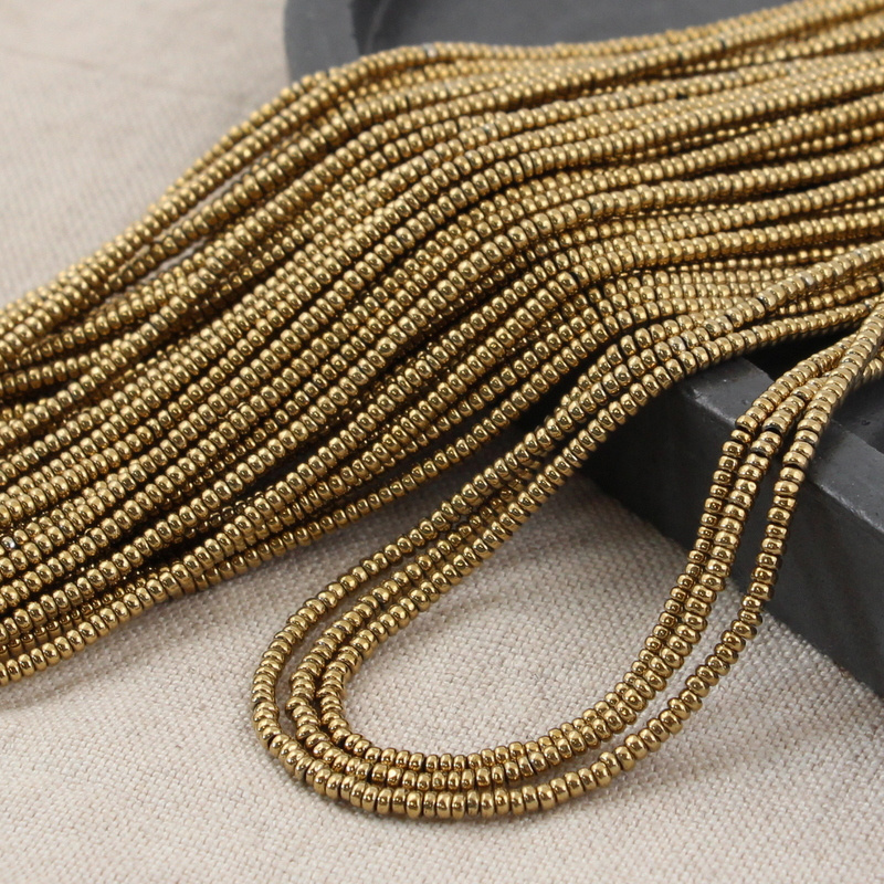Gładki hematyt w kształcie oponki. Kolor antyczny złoty.