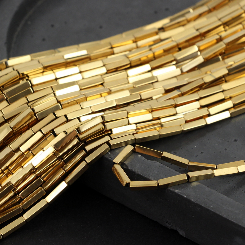 Hematyt złoty prostopadłościan 8x2mm [sznur 39cm]
