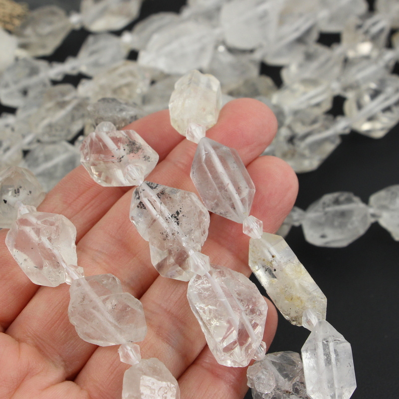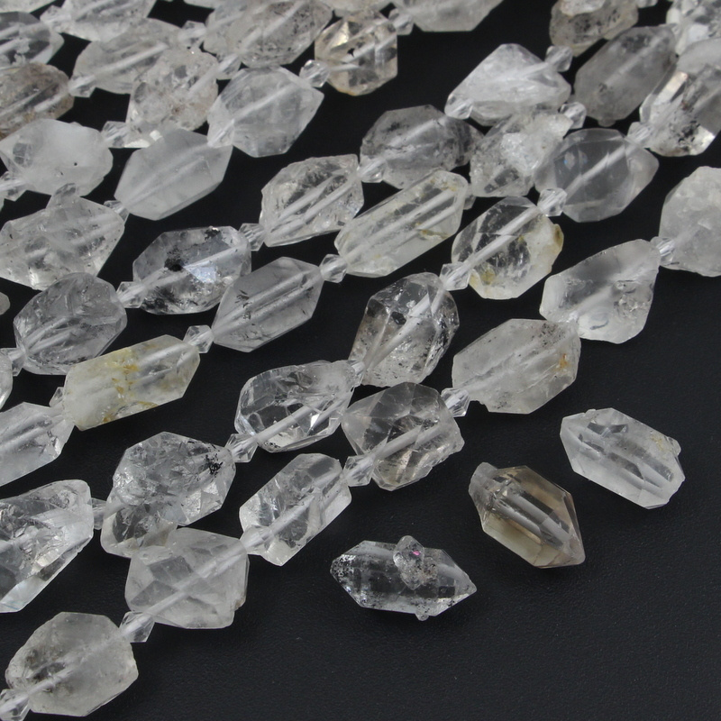 Niezwykłe kwarce potocznie nazywane diamentami z Herkimer charakteryzujące się wyjątkową przezroczystością i silnym połyskiem.