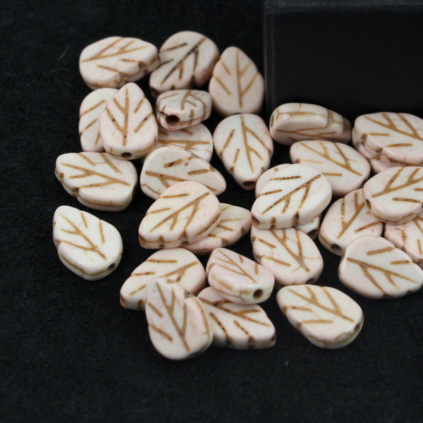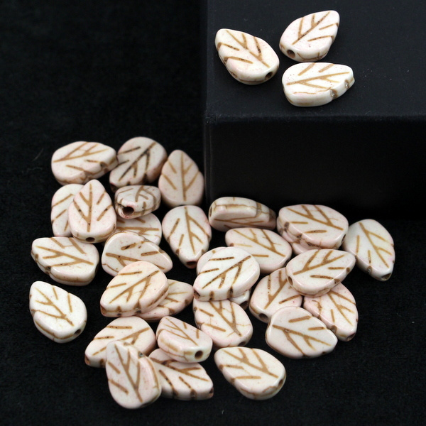 Howlity listki w kolorze kremowym pokryte prążkami i plamkami.
