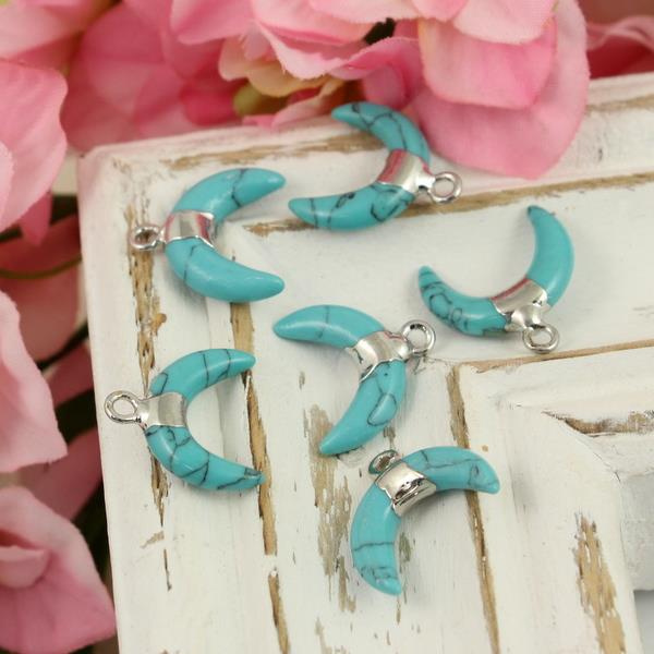 Howlit turkusowy lunula / róg zawieszka 16mm
