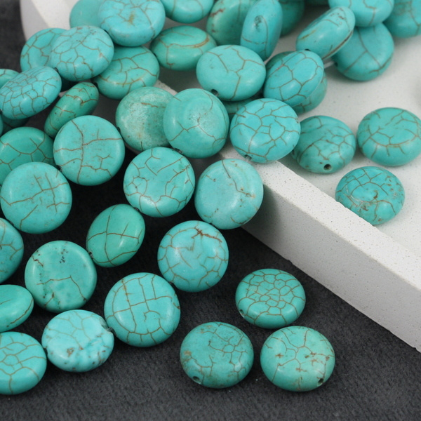 Howlitowe monetki w kolorze turkusowym z prążkami w kolorze brązowym.