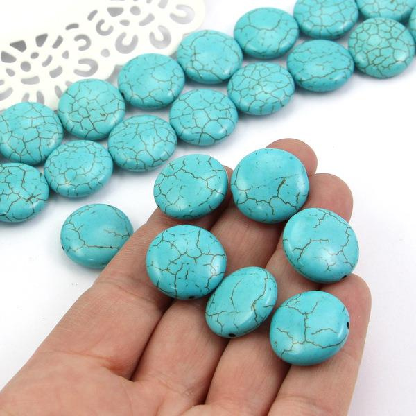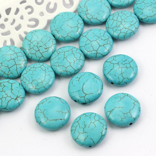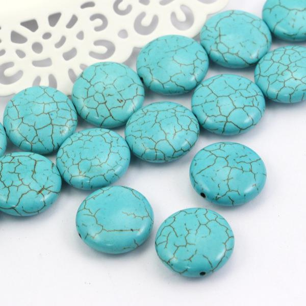 OpisMonety howlitu turkusowego, kamienie posiadają liczne brązowe żyłki. Polecamy do sutaszu i haftu koralikowego. Wiercenie wzdłuż.