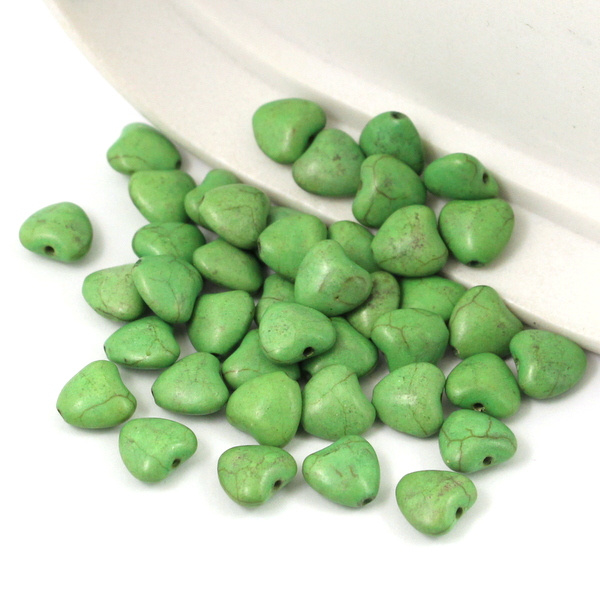 Howlit zielony w kształcie serca pokryty prążkami i plamkami. Szczególnie polecamy do tworzenia kolczyków oraz sutaszu i haftu koralikowego.