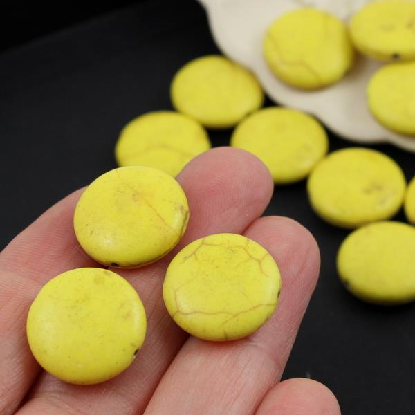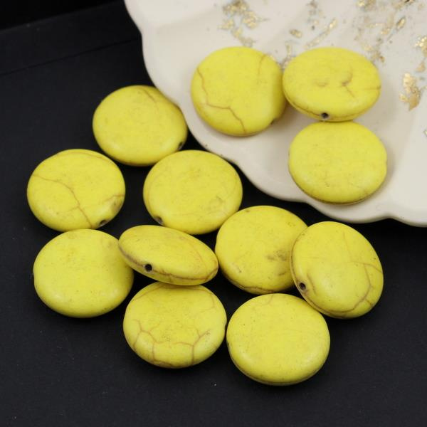 OpisHowlitowe gładkie monety w kolorze żółtym pokryte prążkami i plamkami.