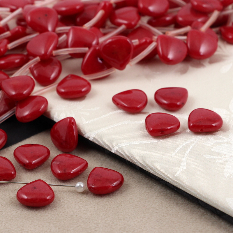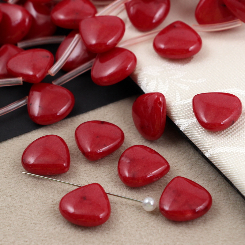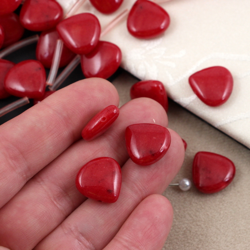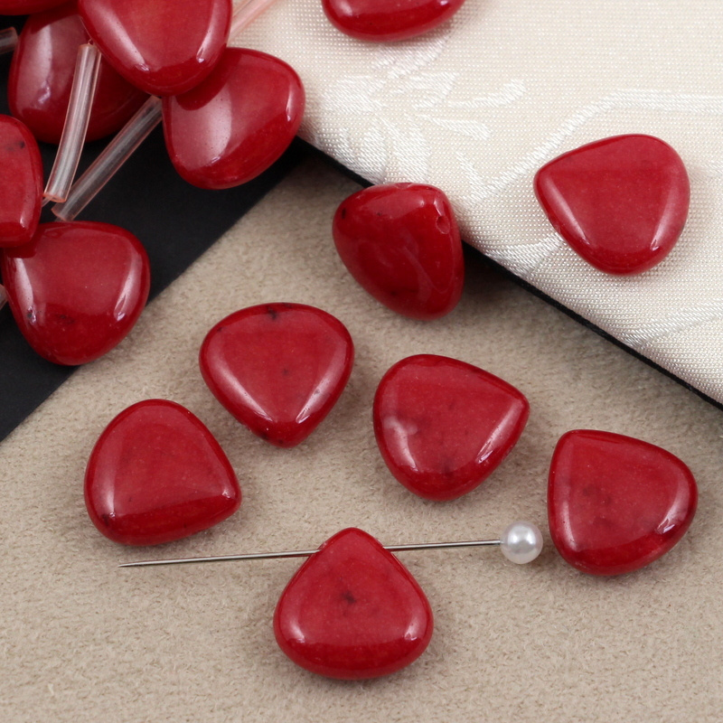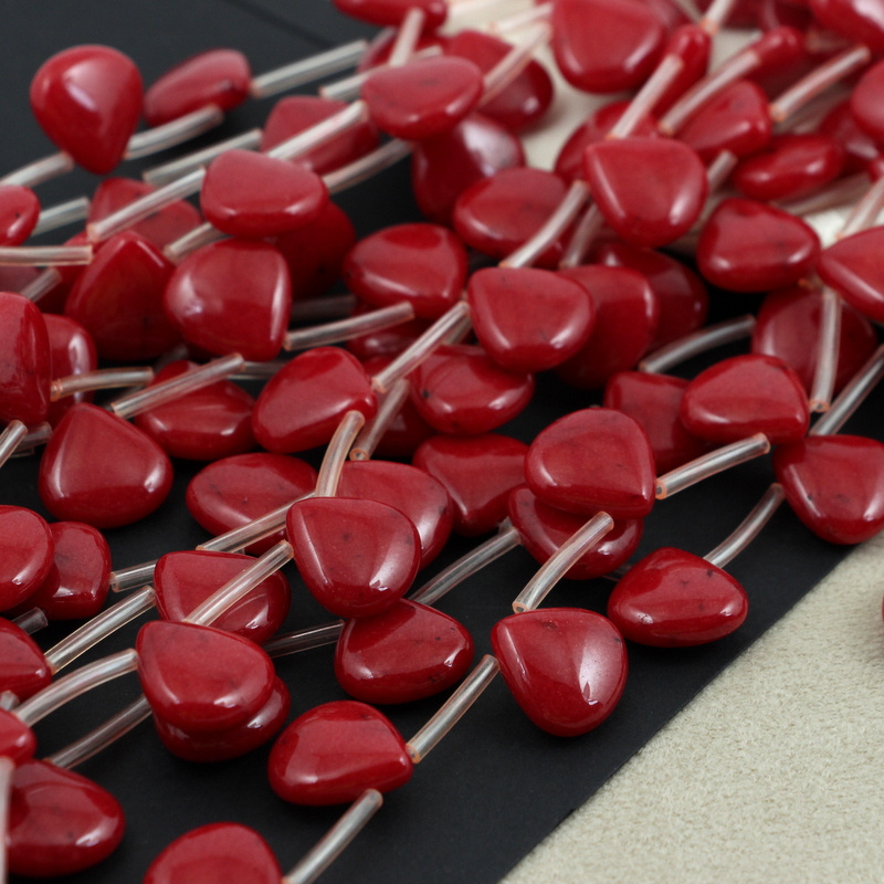 Wypukłe łezki - kamienie jadeitu w kolorze czerwonym.