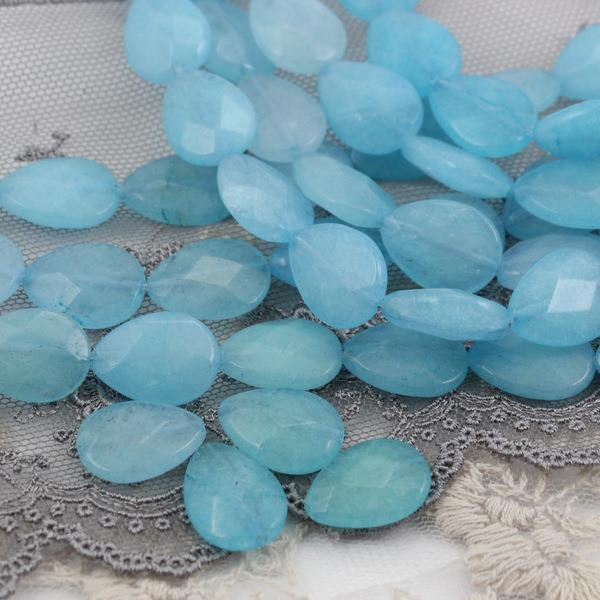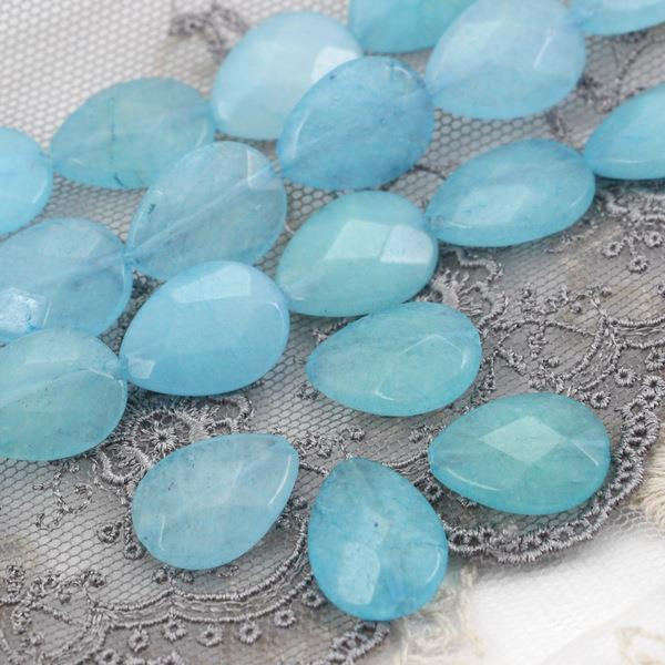 Jadeit łezka fasetowana błękitna 16x12mm