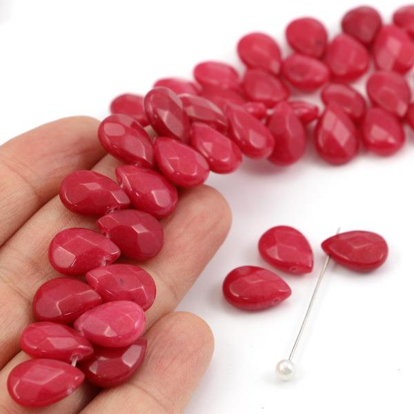 Fasetowane łezki jadeitu w kolorze czerwonym z nutą różowego. Kamienie polecamy na kolczyki, wisiory, elementy naszyjnika.