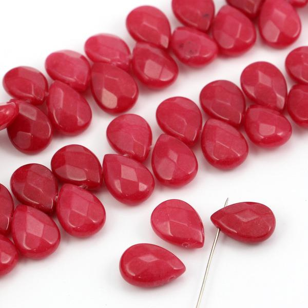Jadeit łezka fasetowana różowo-czerwona 14x10mm