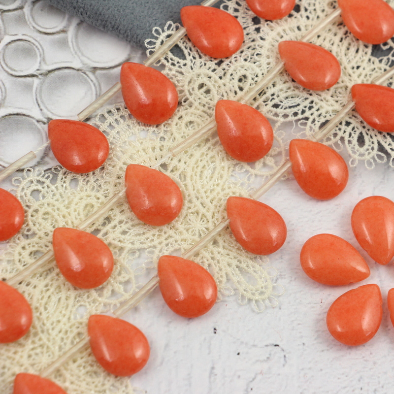 Wypukłe łezki - kamienie jadeitu w kolorze pomarańczowym.