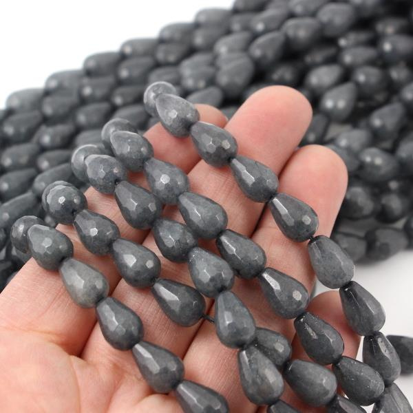 Fasetowane kropelki jadeitu, krótkie i pękate. Na kolczyki, wisior etc.