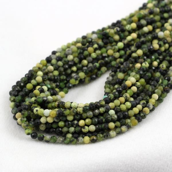 OpisFasetowane kulki turkusu afrykańskiego. Kamienienie w odcieniach seledynowo-oliwkowo-szarych.