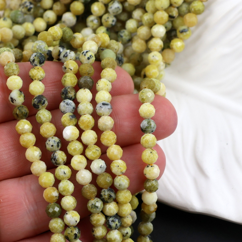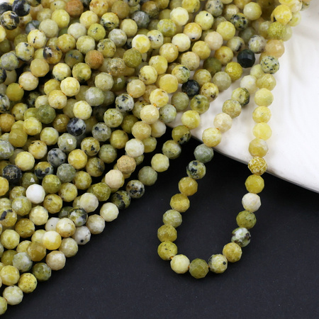 Fasetowane kulki turkusu afrykańskiego. Kamienienie w odcieniach seledynowo-oliwkowych.