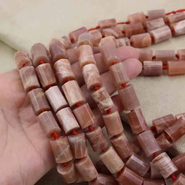 OpisWysokiej jakości wałeczki kamienia słonecznego (sunstone) z migotliwym efektem optyczny, zwanym awenturyzacją.