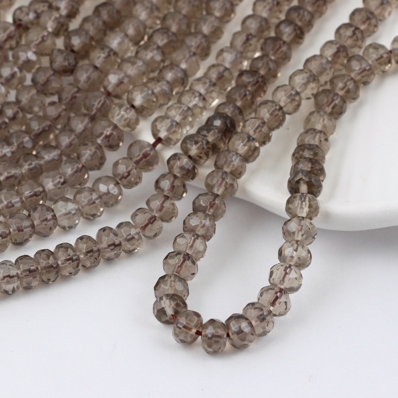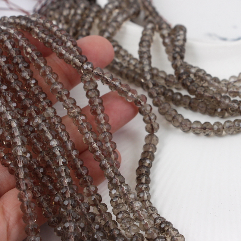 Przepięknie lśniące fasetowane oponki kwarcu dymnego. Polecamy na naszyjniki, bransoletki i kolczyki, także do sutaszu i beadingu.