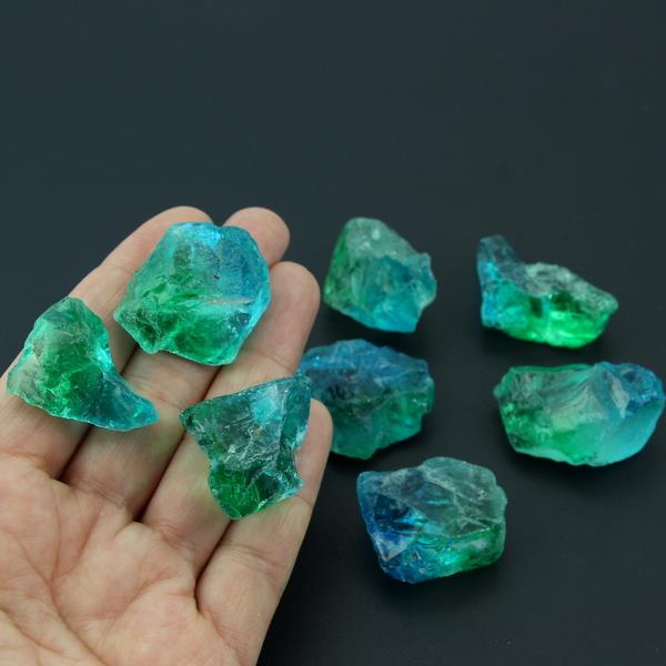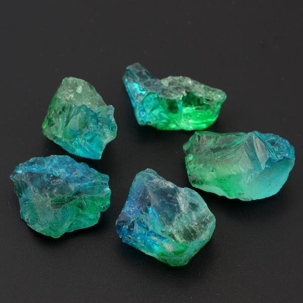 OpisNieregularne bryłki kwarcu barwionego na letnie, energetyczne kolory. Bryłki świetne do projektów z drutem, nie mają otworu.