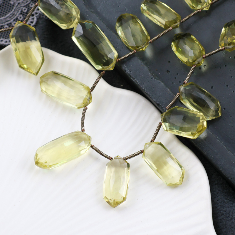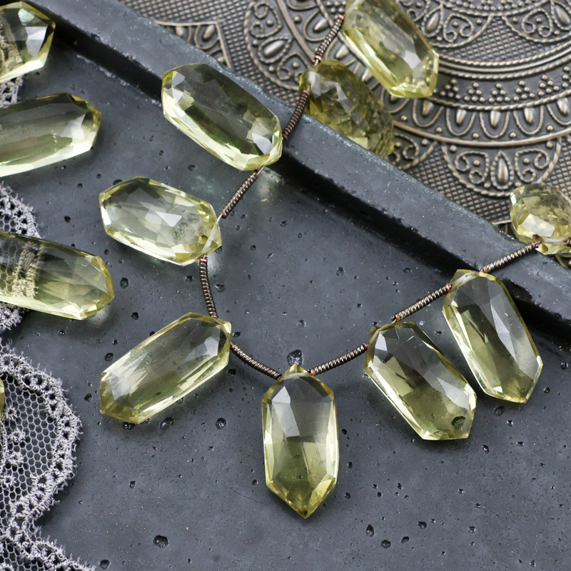 Fasetowanie pięknie wydobywa blask kwarcu sprawiając, że bardzo efektownie prezentuje się biżuterii. Doskonały do wszelkich projektów biżuteryjnych, w tym projektów jubilerskich i do wire wrappingu.