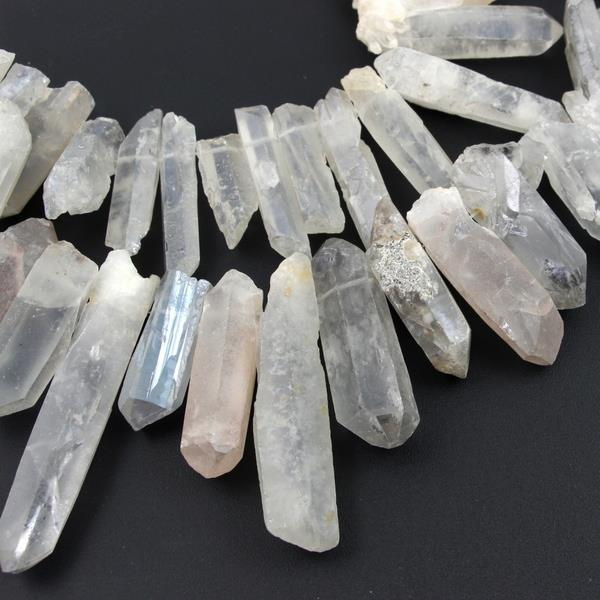 OpisNieregularne bryłki kwarcu wydłużone w kształcie słupka / sopla. Bryłki świetne do projektów z drutem.