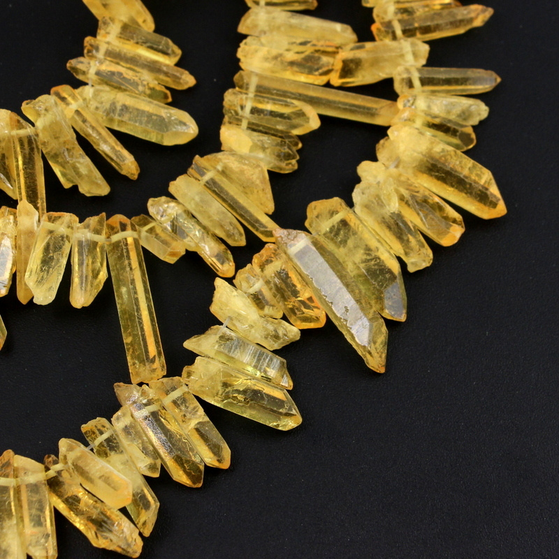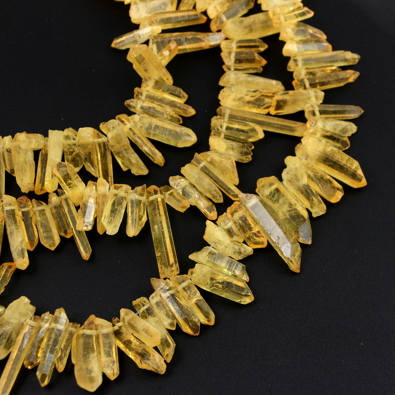Nieregularne bryłki kwarcu wydłużone w kształcie słupka / sopla. Bryłki świetne do projektów z drutem. Kamienie barwione powierzchniowo. Nie ma możliwości dobierania w pary, każdy kryształ jest inny.