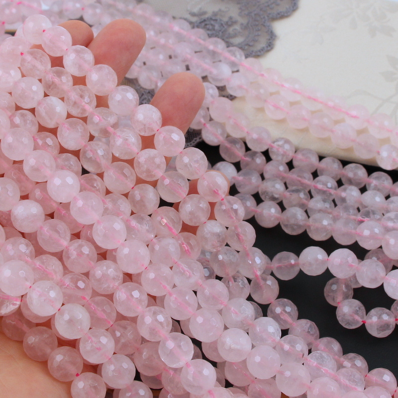 Duże, fasetowane kule kwarcu różowego w rozmiarze ~10mm