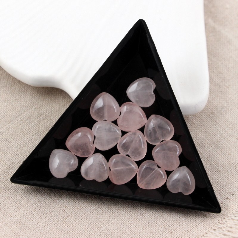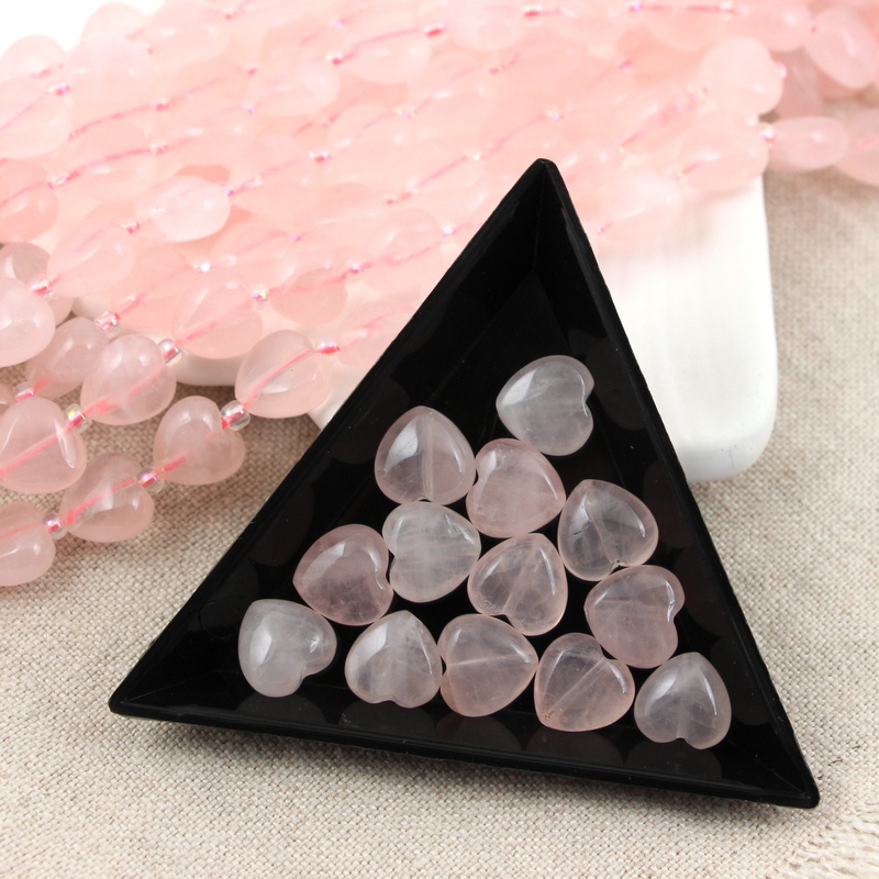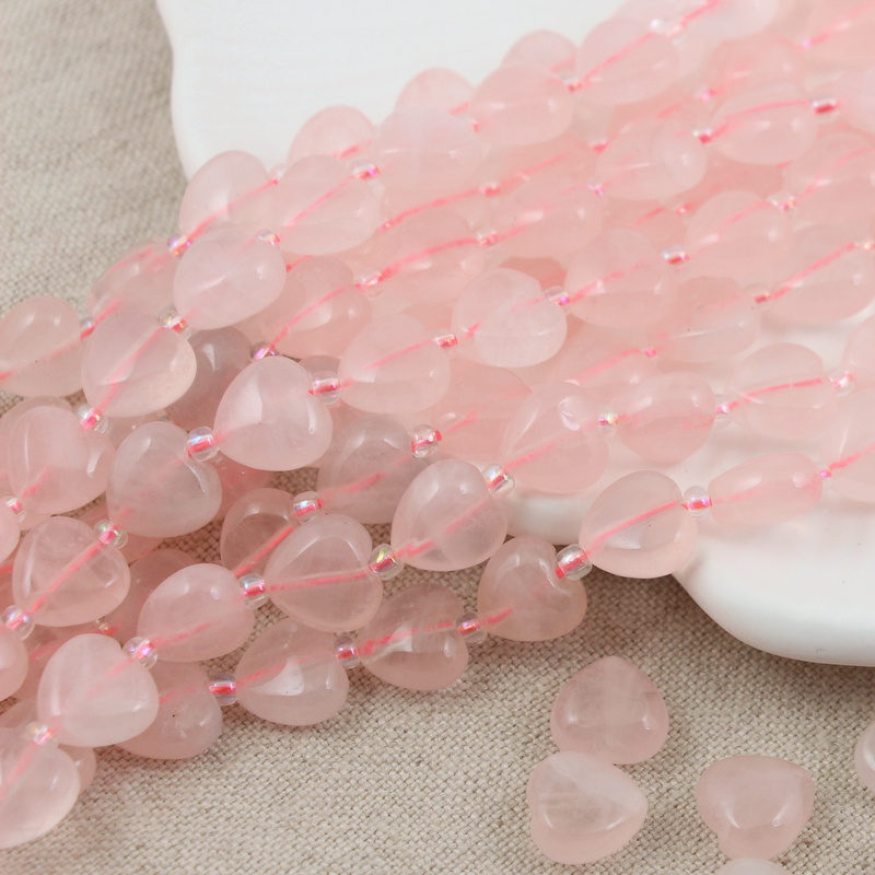 Kwarc różowy w postaci gładkich, wypukłych serc.