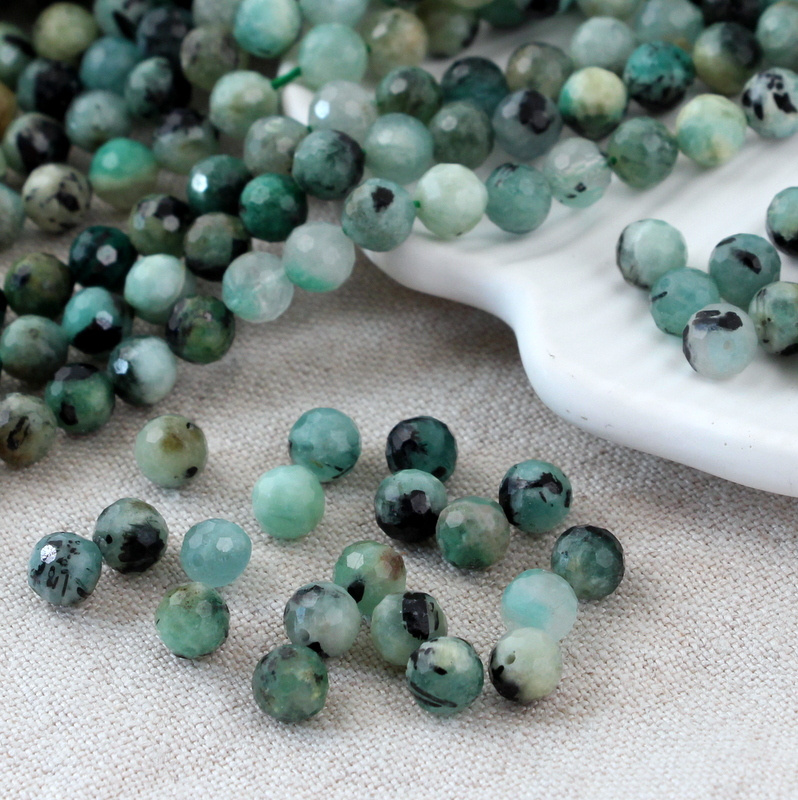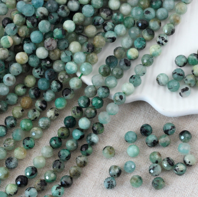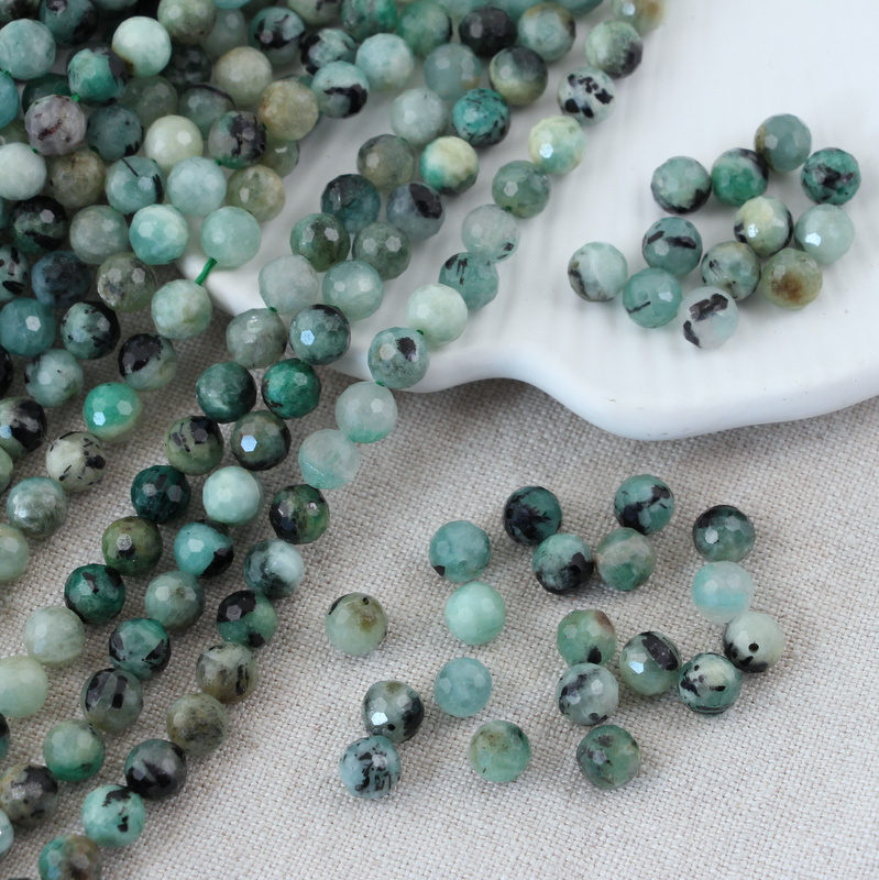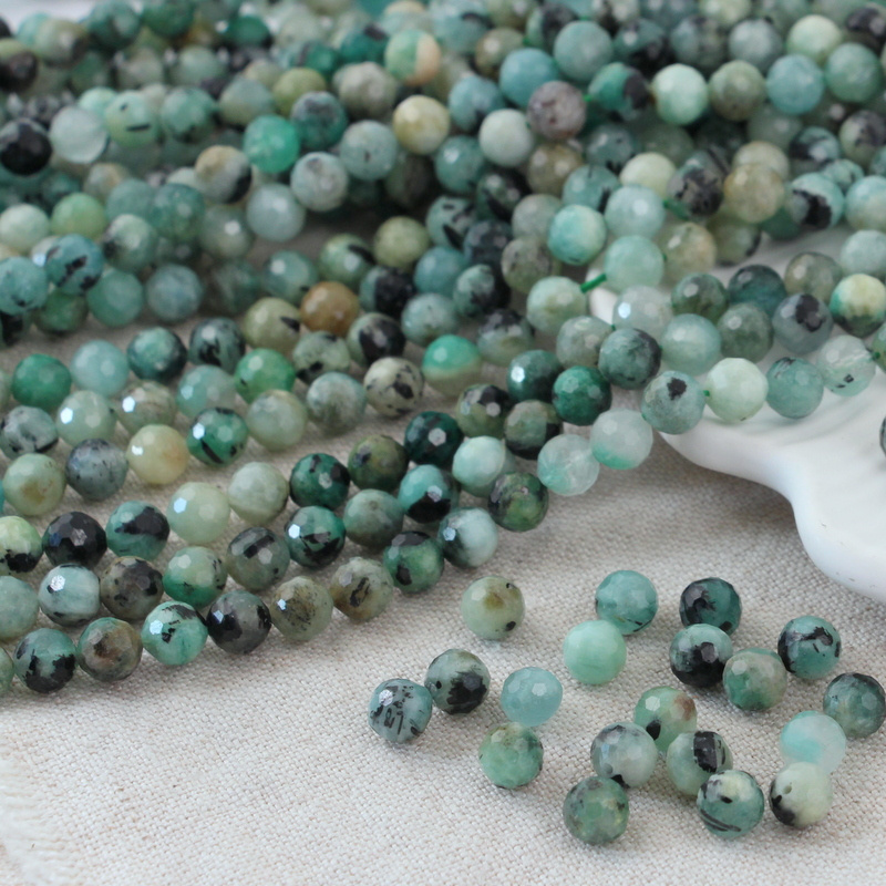 Pięknie fasetowane kulki zielonego kyanitu / kianitu. Unikatowe wybarwienie bardzo efektowne do każdego rodzaju biżuterii, szczególnie polecamy na supełkowane naszyjniki z dodatkiem półfabrykatów ze srebra.