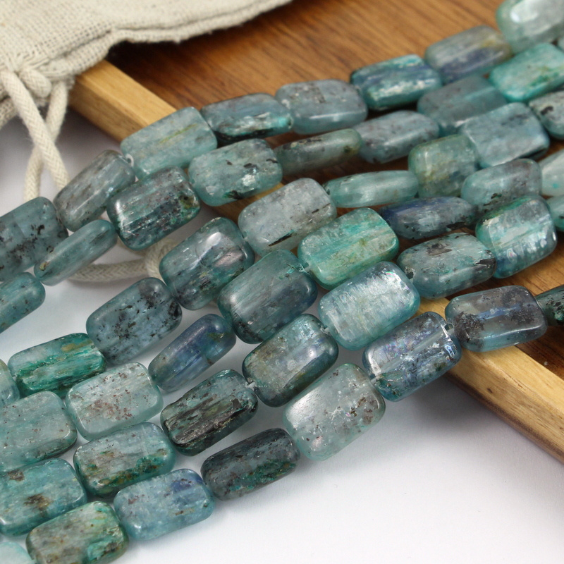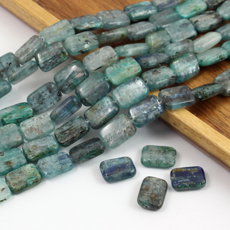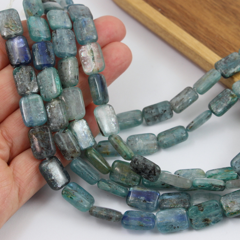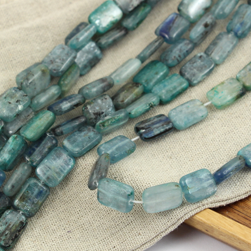 Kyanity w postaci płaskich prostokątów, bardzo oryginalne, świetne przejścia tonalne, w każdym kamieniu "dzieje się".