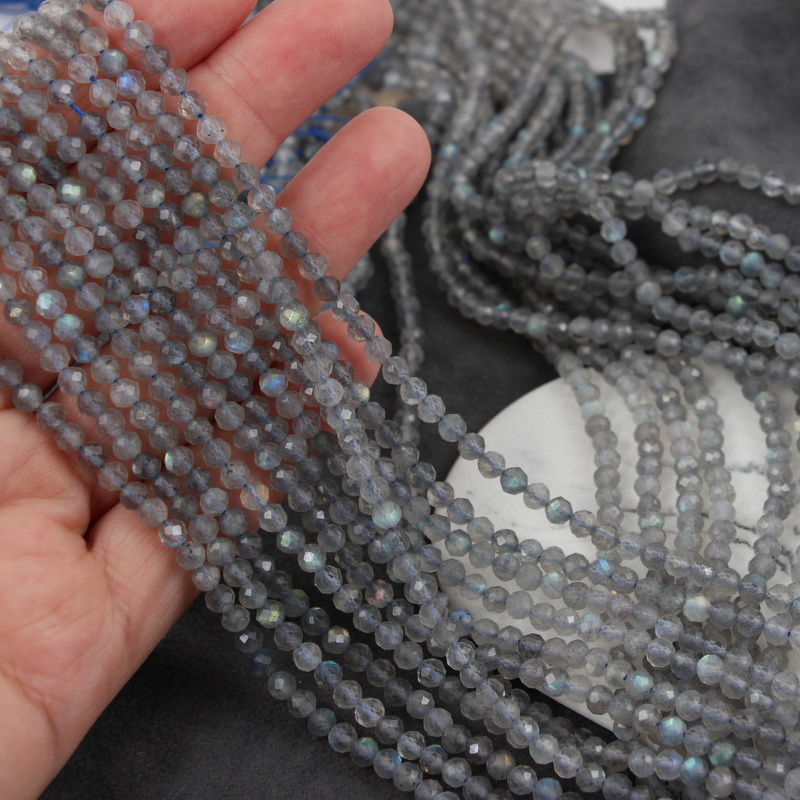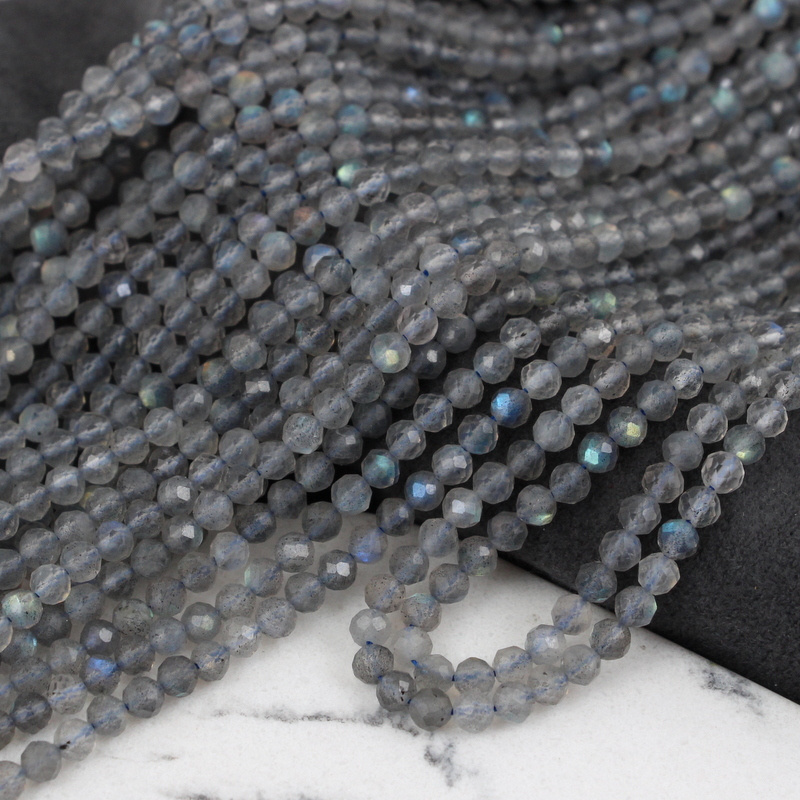 Labradoryt kula fasetowana 4mm [sznur 39cm]