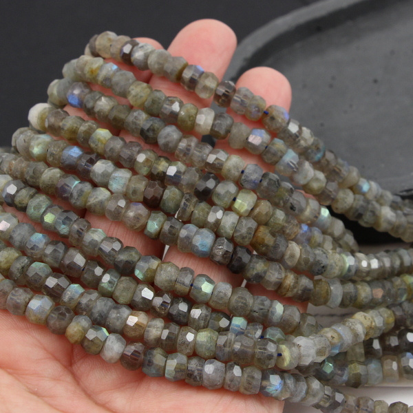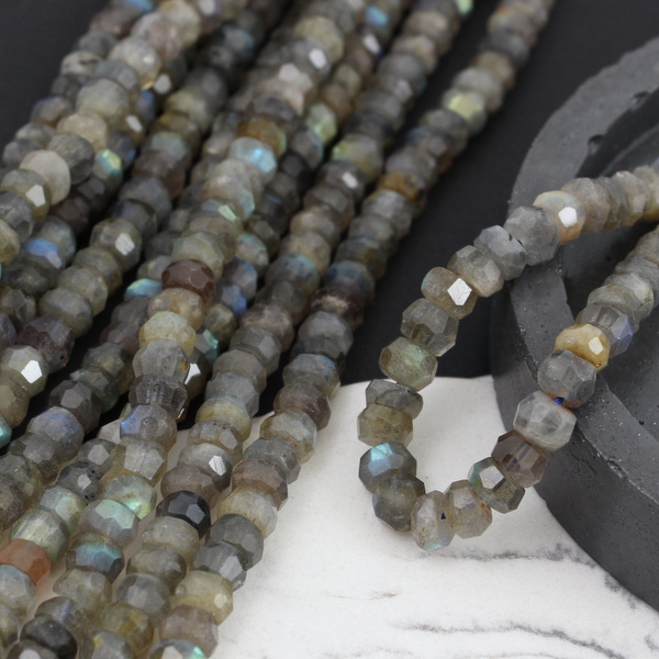 Wysokiej jakości sznur kamieni labradorytu, fasetowane dyski / oponki z ładną labradoryzacją.