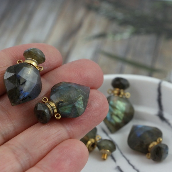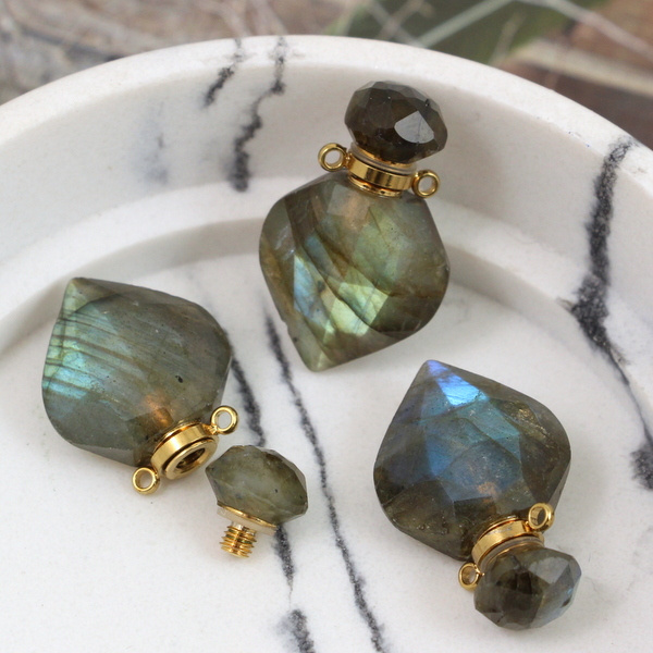 Labradoryt zawieszka perfumetka z odkręcanym korkiem 26x16mm